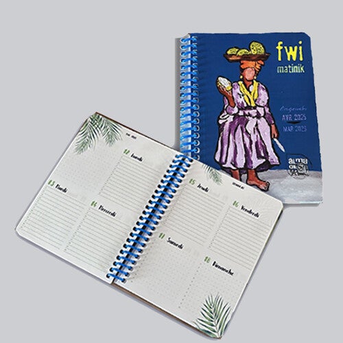 Découvrez nos agendas disponibles en formats A6 et A5, avec le choix entre une reliure spirale ou encollée. Leur couverture, personnalisée avec une ou deux illustrations, apporte une touche de design unique. Optez pour une présentation journalière ou hebdomadaire sur une année complète, avec des pages épurées ou décorées de motifs tropicaux pour un style qui vous ressemble.