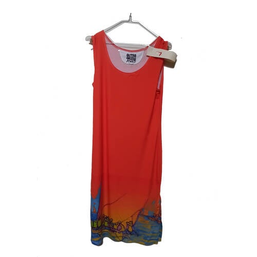 Robe mi-longue moulante 100% jersey de bonne qualité, marquage durable après lessivage. Degré de lavage : 30° conseillé. Repassage indiqué sur l'étiquette de l'imprimeur.