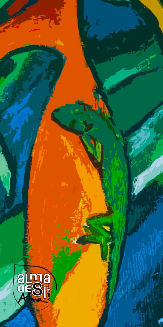 À ses débuts, nos créations reproduisaient fidèlement les peintures originales d'Alice Marthe, disponibles en versions intégrale ou monochrome. Avec le temps, ces 9 designs ont été revisités et épurés, mettant en lumière des visages et des éléments de la nature.