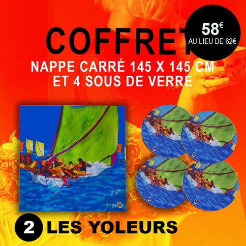 Saisissez cette offre exceptionnelle : le lot comprend une nappe carrée, 4 sous de verre et un tablier, le tout pour seulement 82 € au lieu de 86€.