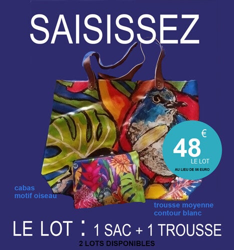 Saisissez cette offre exceptionnelle : le lot comprend un cabas et une trousse moyenne, le tout pour seulement 52 € au lieu de 56€.